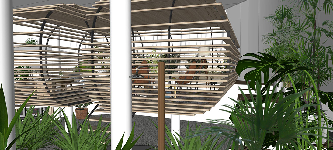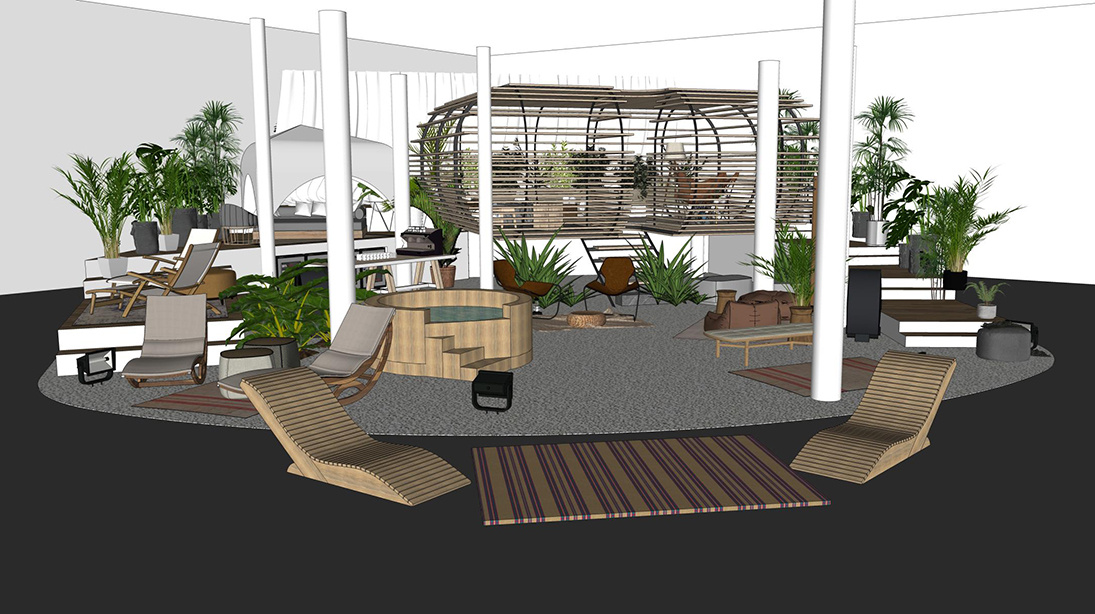 Σε αρχιτεκτονικό επίπεδο η ιδέα βασίζεται στη δημιουργία ενός υποχώρου εντός του περιπτέρου της έκθεσης, ο οποίος θα είναι σαφώς καθορισμένος για να λειτουργεί σαν μεταφορά ενός υπαίθριου εξωτερικού χώρου glamping. Κεντρική θέση στο χώρο κατέχει ένα νέο είδος σκηνής glamping, σχεδιασμένη από την Urban Soul Project.