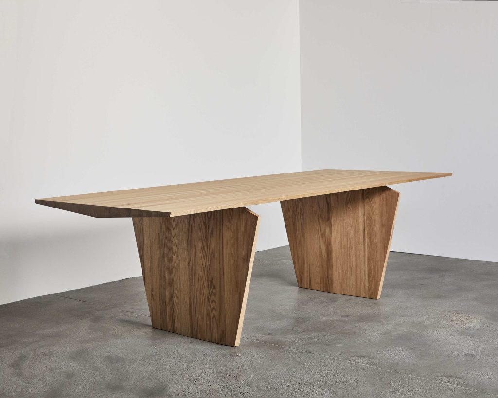 Φτιαγμένο από μασίφ αμερικανική κόκκινη βελανιδιά, το τραπέζι Navalia είναι φτιαγμένο με την τεχνική «via di levare»: από φύλλα ξύλου δηλαδή που σκαλίζονται και σχεδόν πλάθονται μέχρι να επιτευχθεί το τελικό σχήμα. Οι κλίσεις του χτίζουν μια δυναμική μορφή που συνδυάζει αισθητική και δομική αρμονία. Το όνομα του αναφέρεται στο ναυτικό σύμπαν, και κατ’ επέκταση στο αεροναυτικό και στόχο έχει να τονίσει την επίτευξης της αγνής ομορφιάς μέσα από την πρακτικότητα και την αισθητική.